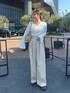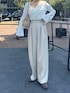 [tops]着用サイズ:FREE ドレープデザインで程よい肌見せが叶うトップス。 さらっとしたカットソー素材で着心地も◎ お袖がフレアになっていて女性らしいシルエットで着用いただけます。 [pants]着用サイズ:36 ロングセラーの大人気パンツに新色が登場 センタープレスでスタイルアップ効果抜群◎ 骨格問わずシルエット綺麗に履けて、楽に着用していただけるパンツ。 気になる部分のラインを捨わず、後ろゴムでストレスフリーです。 シワもつきにくいのでアイロンなしで着用いただけます。