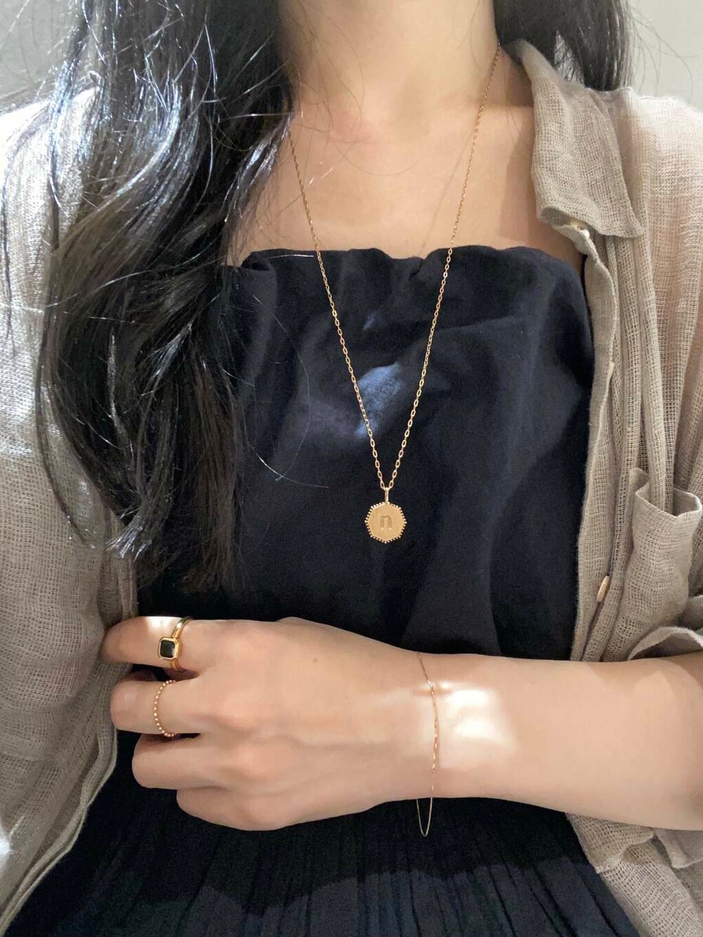 ネックレスは70cmですが アジャスターカンがついており、 洋服に合わせて短くして着用しました。 手元は石のリングオニキスを中心に コーディネートしてみました。 オニキスの黒色で手元が引き締まるので 秋に向けてのコーディネートのポイント としてもおすすめです◎ 店舗通販やルミネカードWEB決済サービスも ご利用いただけます。 お気軽にお問い合わせください。 decor URBAN RESEARCH NEWoMan YOKOHAMA TEL:050-2017-9186 LINE: @230yigvl instagram:@decor_urbanresearch