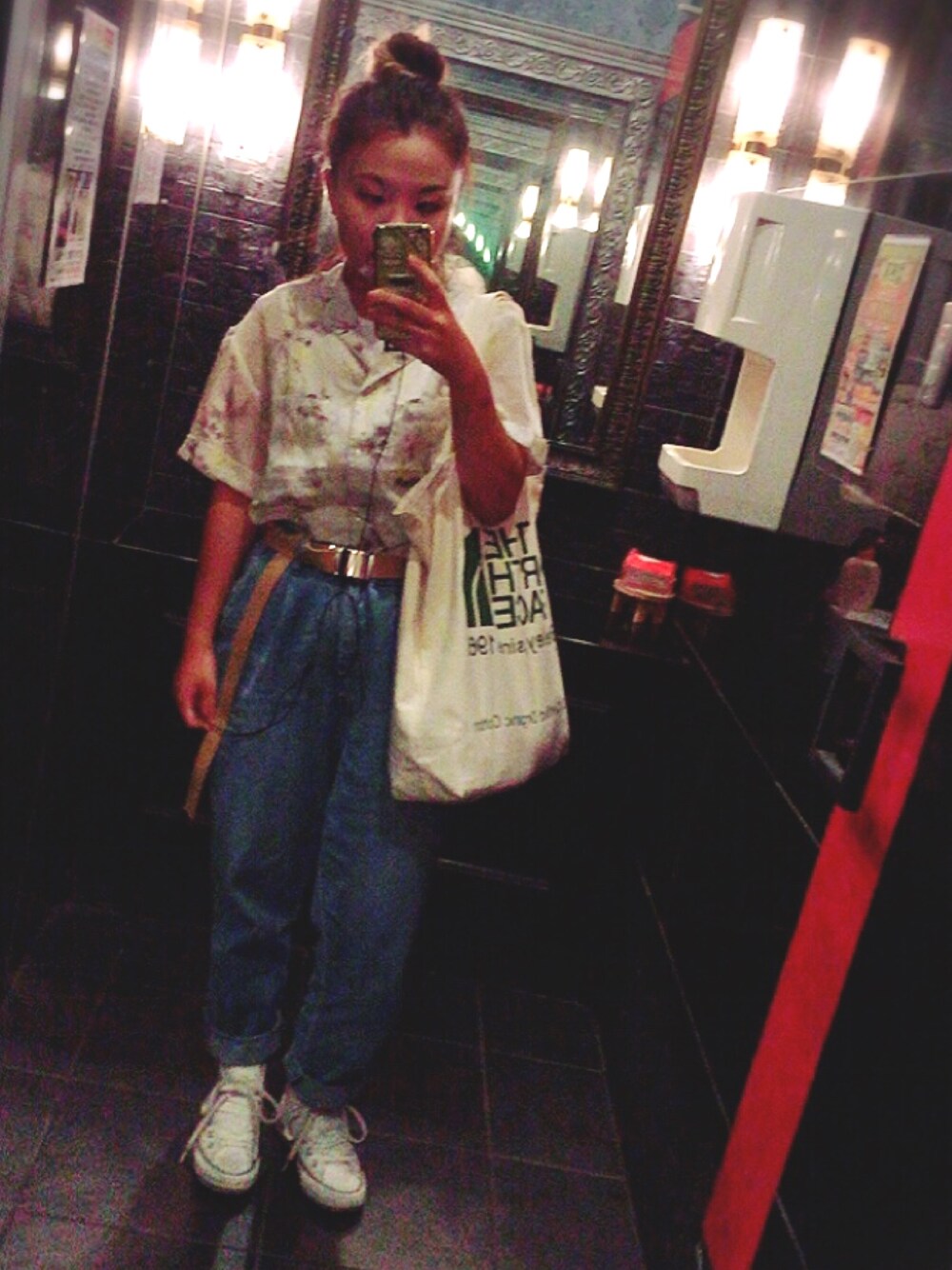 柄シャツ×コンバースの白 この組み合わせしてみたかったんです〜(笑) どうですかね?(笑) 下半身デブなんですが、こういう格好だとおしりがおっきいのバレちゃうので、お尻痩せしないとです😔(笑)