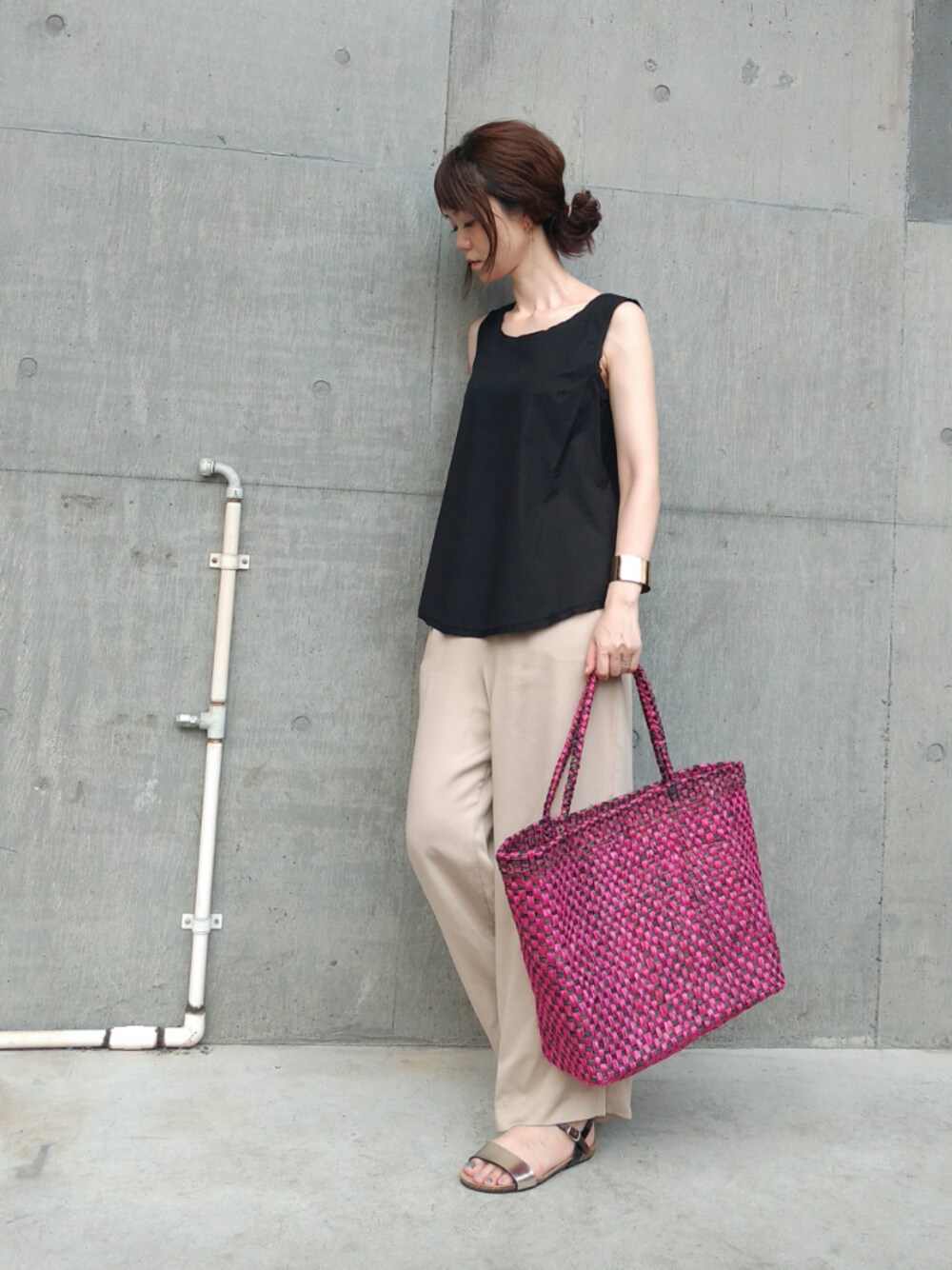 ご覧頂きありがとうございます 『ベージュモノトーン × ピンクパープル』 やっぱりでっかいカバンが好きみたい。 自称かごバッグマニアとしては もう、セールでは買うまいと思ってたのに 大きさと色にやられてポチッちゃいました。 シンプルコーデのアクセントにピッタリです