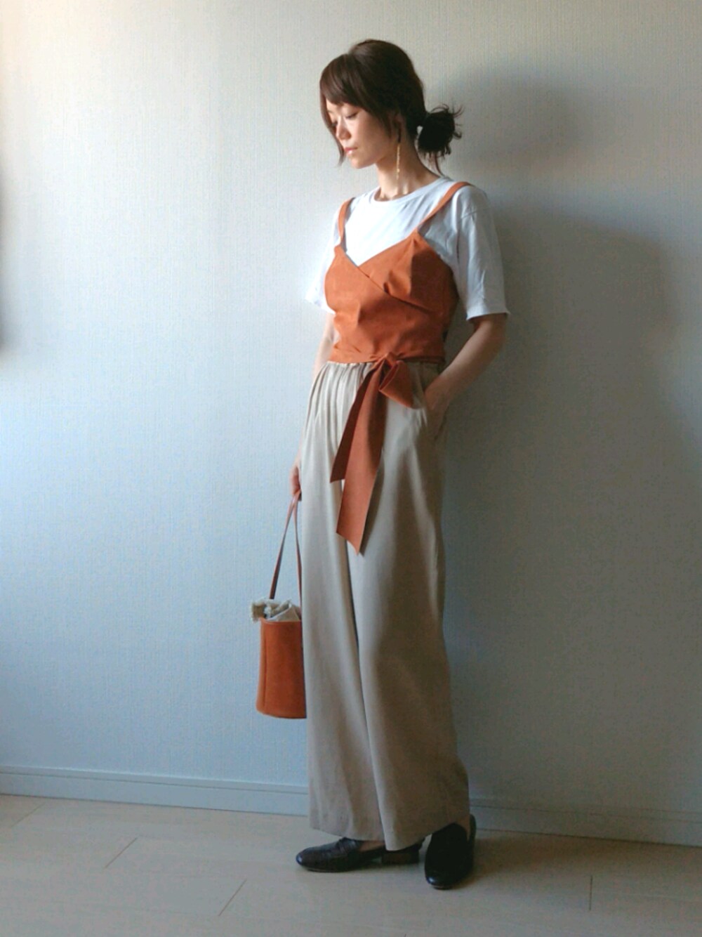 ご覧頂きありがとうございます 『キャメルオレンジ × ベージュ』 タイムセールでゲットした 初ビスチェ🙈 フェイクスエードだから これからの季節も使えそう🍂