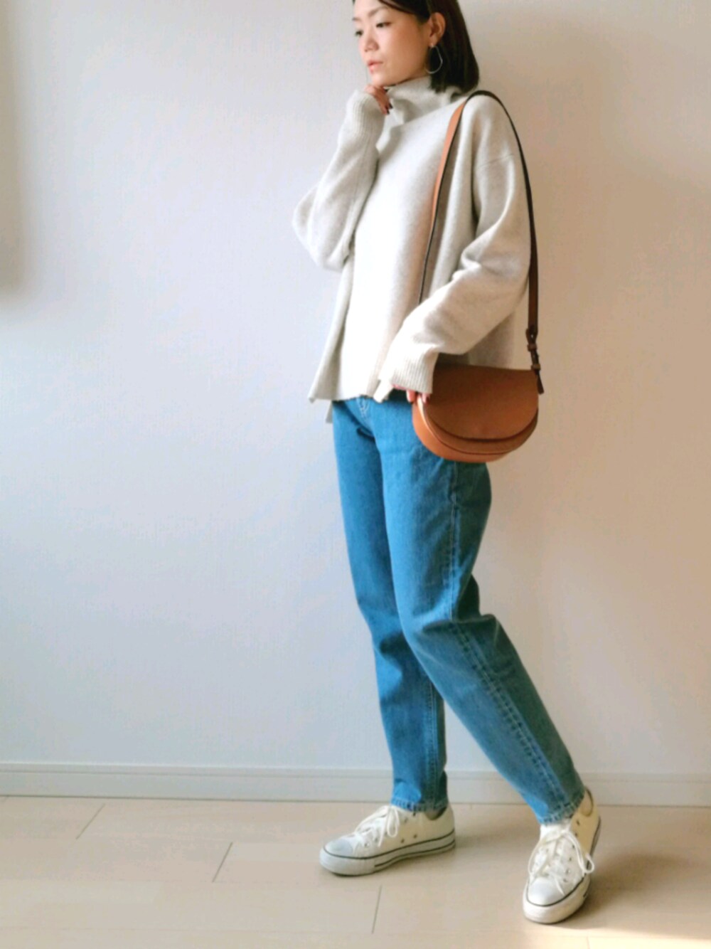 ご覧いただきありがとうございます 「ライトグレー × デニム」 最近毎日デニム 雪が降りだし、明日はまた積もるかな