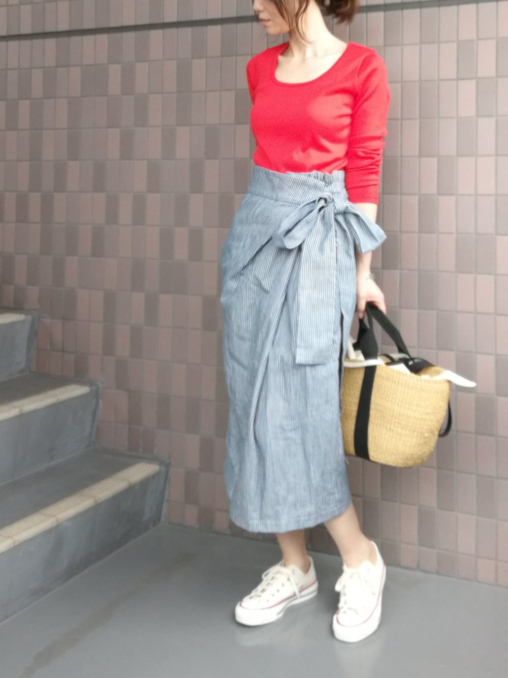 ご覧いただきありがとうございます 「レッド × ヒッコリーブルー」 カジュアルGWコーデ うかれピクニックみたいになってしまった