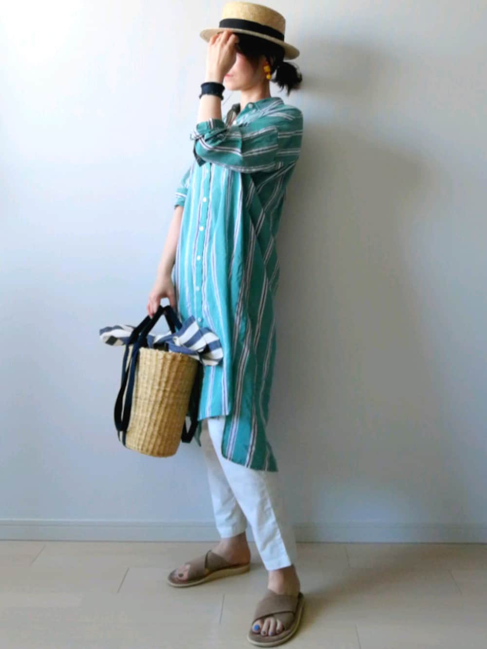 ご覧いただきありがとうございます 「グリーン × ホワイト」 さわやかな色合わせ。 小物もリゾートみたいな組み合わせに。