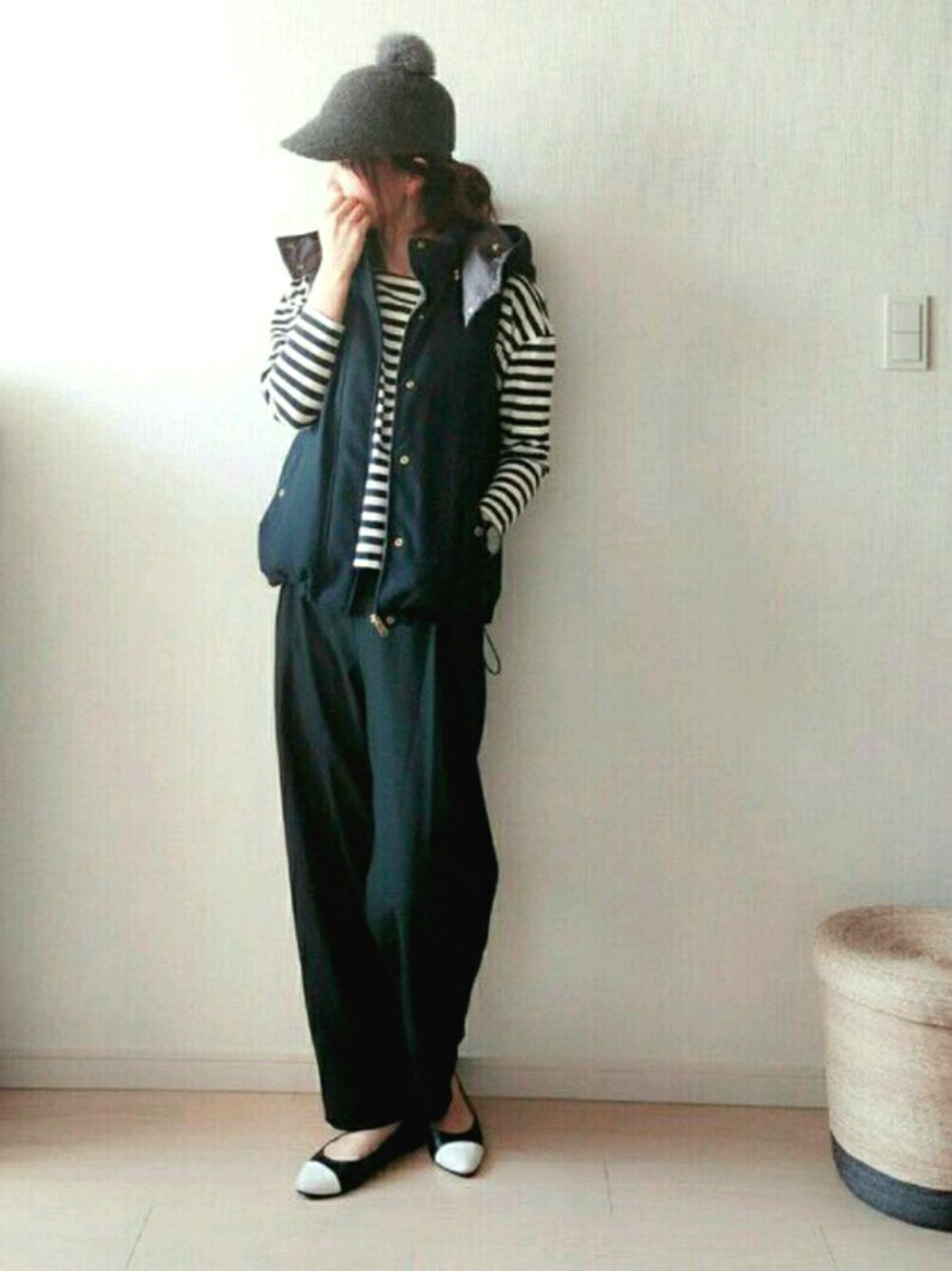 おはようございます! ご覧頂きありがとうございます。 上海から帰ってきました✌ 今日は、ワイドパンツにダウンベスト。 ポンポンキャップで男の子っぽく🙆