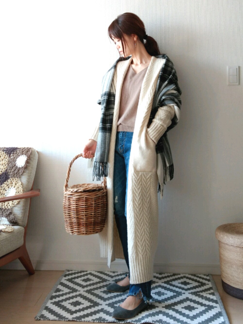 『ベージュ × ホワイト ×デニム』 なんてことない、着回しです。 今日は午後からお出かけしようとしてますが、 雨雲が近づいてるって、😣 最近寒いのか暑いのかよくわからない。