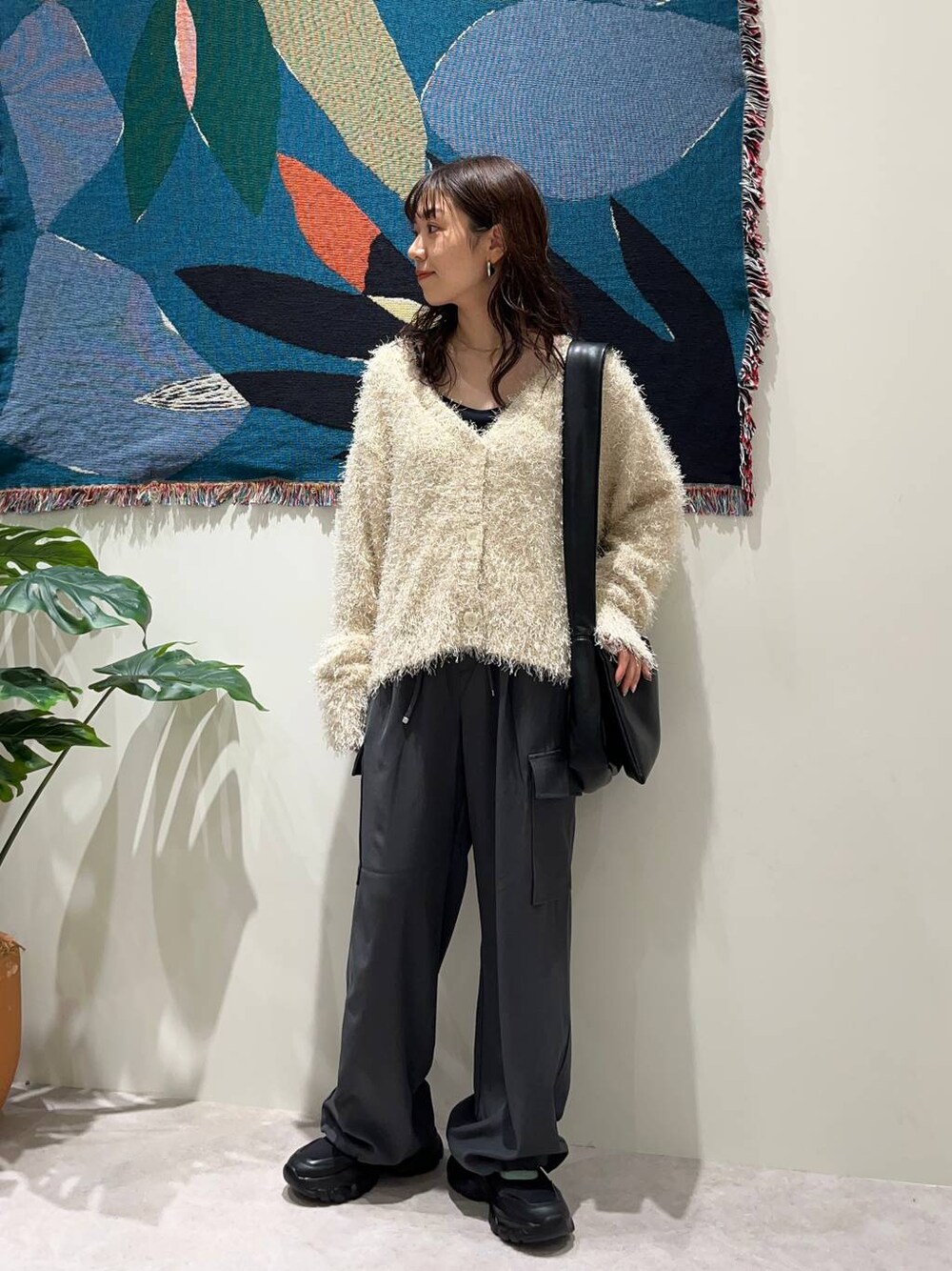 【カーディガン】ショート丈着用 ショートとロングの2展開です! シャギー素材ですが毛羽たたず、 他の洋服に付かないので安心して着れます!◎ 伸縮性あり毛玉にもならないのでとっても使いやすく オススメです!!! 【パンツ】Fサイズ トレンドのカーゴパンツ チャコールグレーはカジュアルになりすぎず きれい目な雰囲気で着れてオススメです! Fサイズでもウエストと裾を絞って調節 出来るので丁度いいサイズ感で着れました◎ カーディガン全色着回しているので 他のスタイリングも是非見てみて下さい(^-^)⭐︎ Instagram: ☝︎こちらも是非チェックしてみて下さい♡