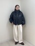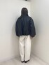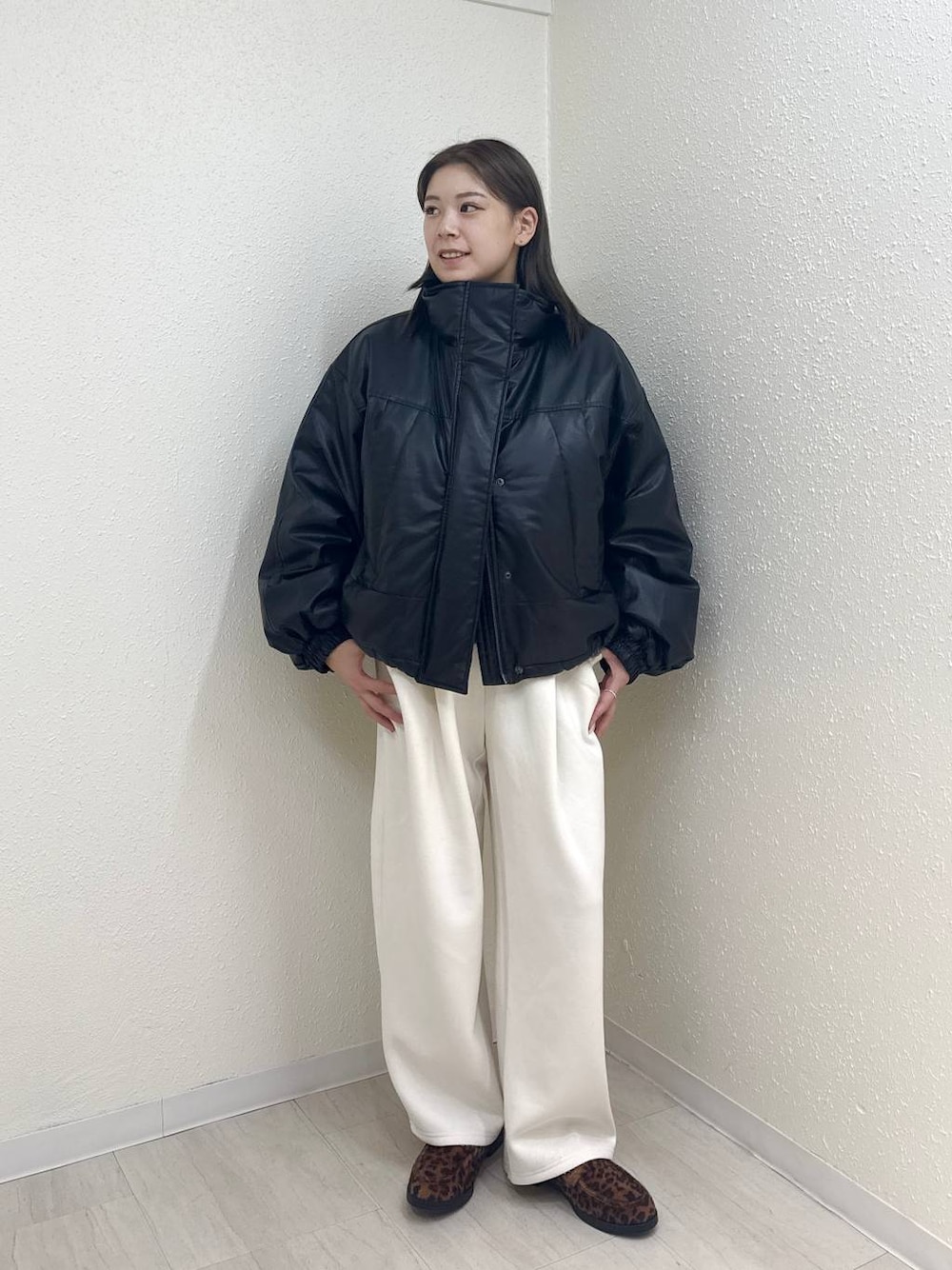 軽くてあったかい中綿入りで、見た目よりめちゃ軽いアウター! フェイクレザーだけど柔らかい質感だから、ハードになりすぎず着られるよ◎ ショート丈×ボリューム感が今年ぽくて、裾のドローコードで丸いシルエットにもできる🖤 ゆったりだから中にスウェットもパーカーもニットも余裕で着込めちゃいます!