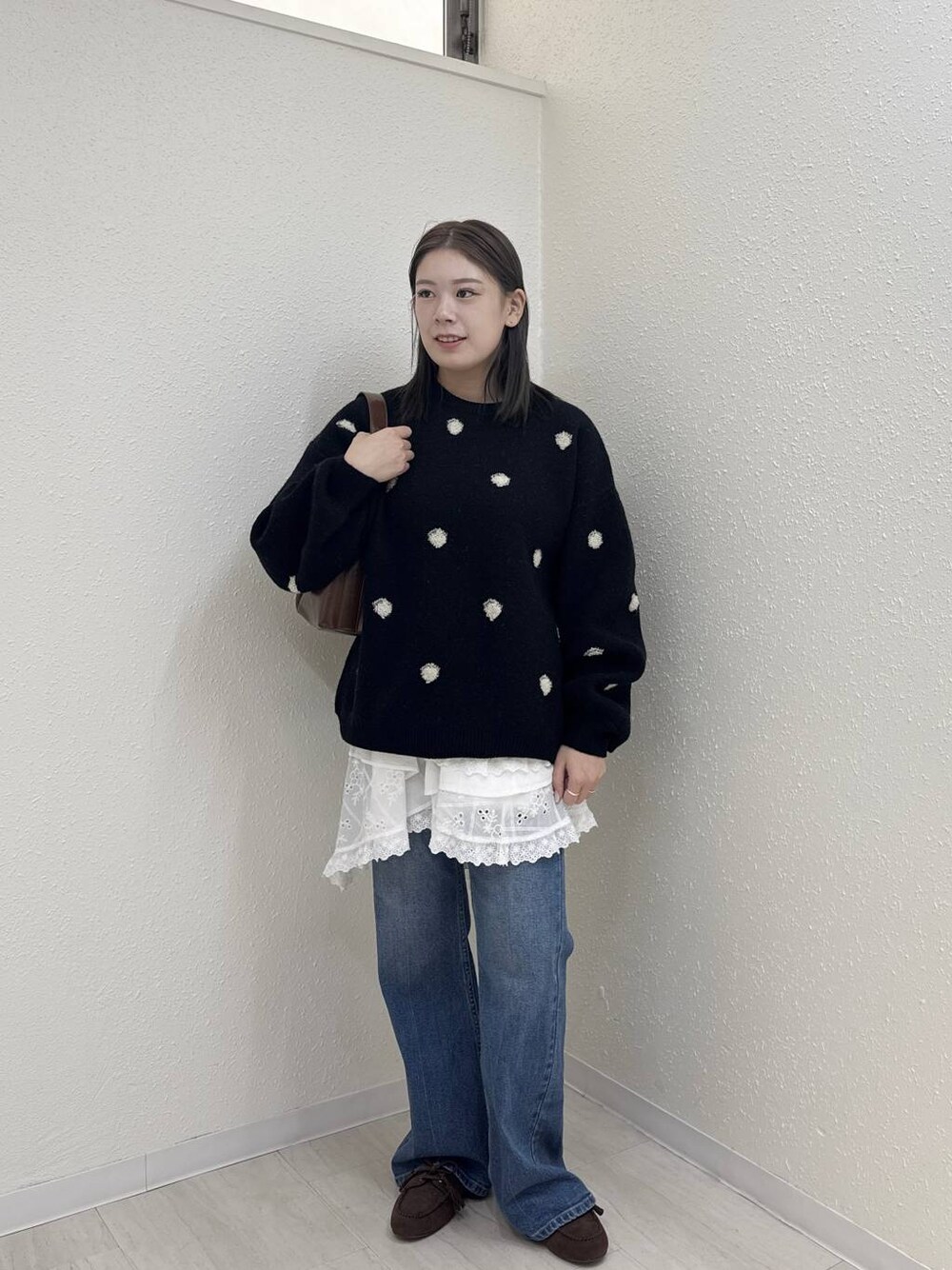 ドット柄がトレンド。 ゆったり着れます! レースでレイヤードするだけで一気におしゃれに✨️✨️