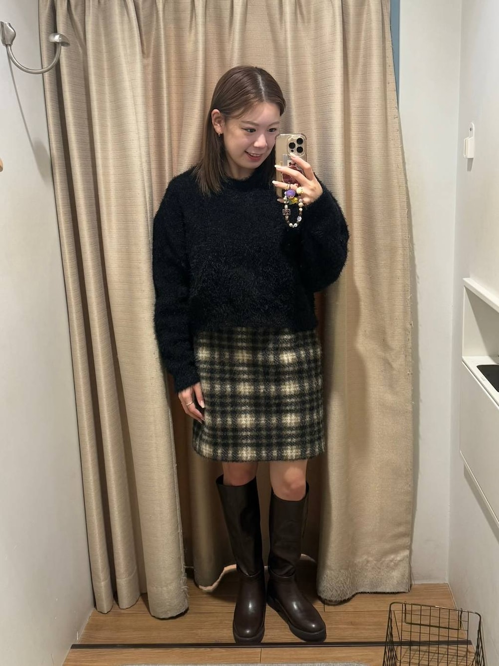 ミニスカートコーデ 154cm トップスFサイズ着用 ボトムスMサイズ着用