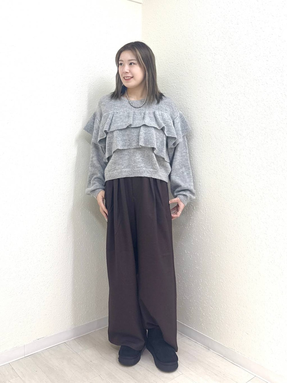 冬コーデ 154cm トップスFサイズ着用 ボトムスMサイズ着用