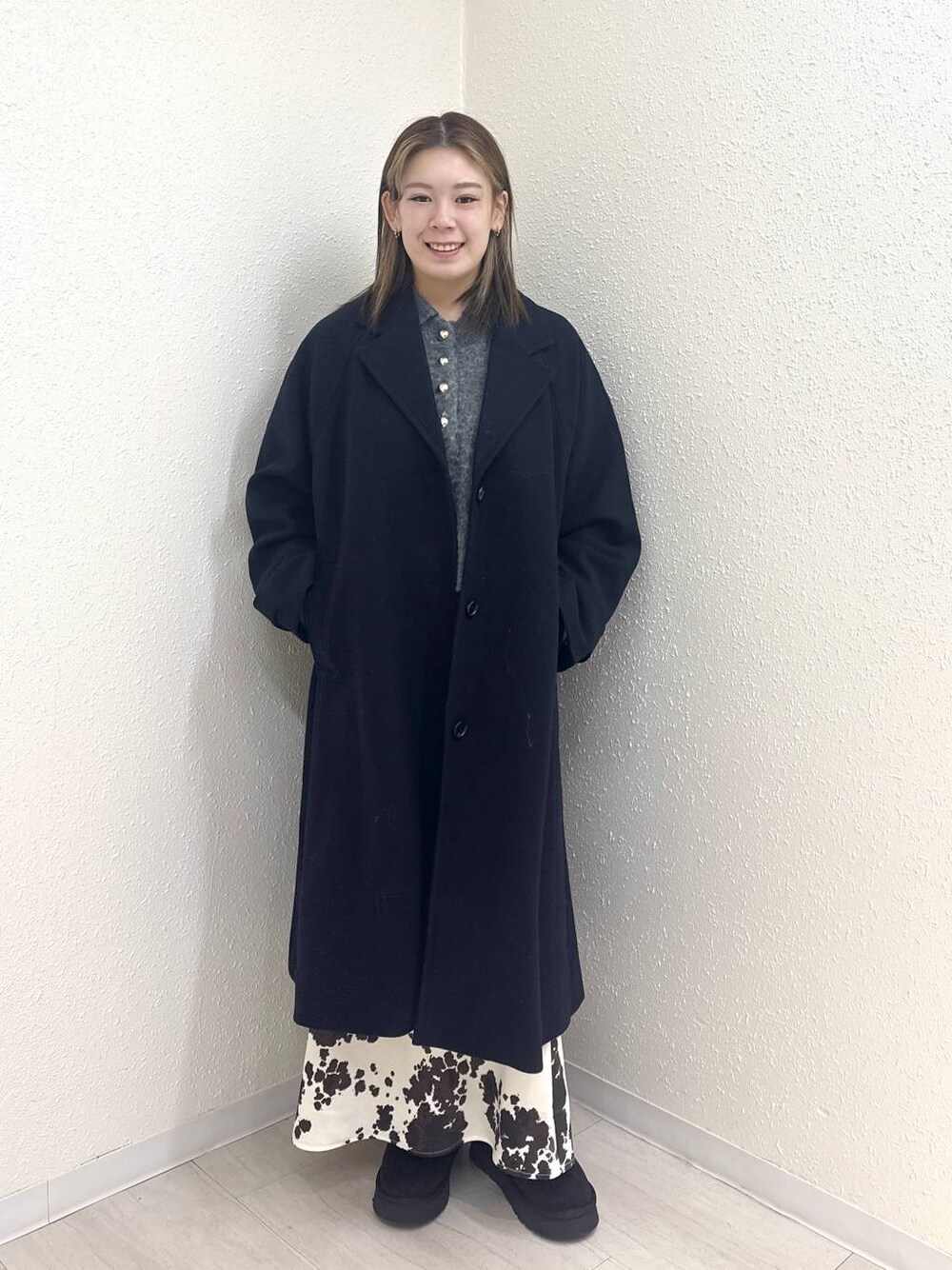冬コーデ 🔍ウールライクチェスターコート どんなスタイリングでも羽織るだけで完成度を格上げしてくれる万能アウター! 重さを感じにくい軽めの素材でデイリー使いにピッタリ🙆♀️ 全体的にオーバーサイズでゆるやかに広がるAラインシルエットが特徴です! 154cm アウターFサイズ着用 トップスFサイズ着用 ボトムスSサイズ着用