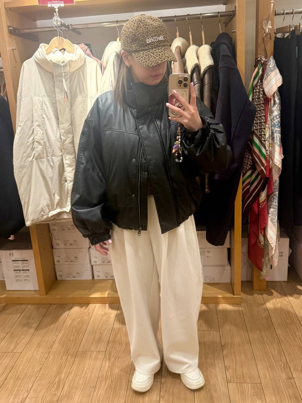 アウターコーデ レザー×キャップでかっこよく!