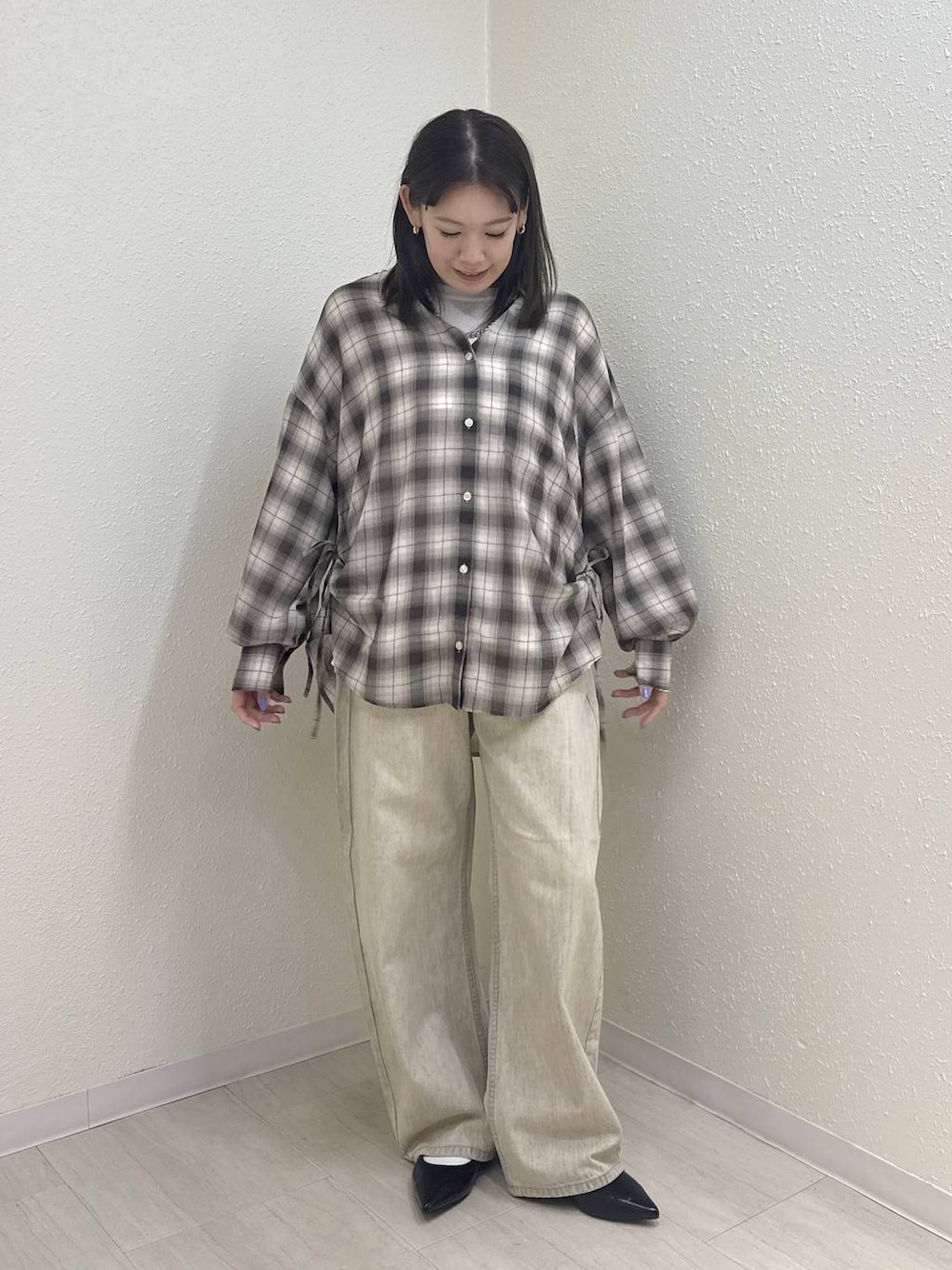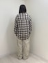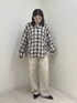 ポリエステル100%のチェック生地を使用。 今年らしいリボンディテールをプラスしたオーバーシャツ。 脇のリボンを結ぶと着丈を調整できたり裾がラウンドするようなデザイン変化を楽しめます。紐を結ばずにラフに着こなすのも🙆♀️ パンツでもスカートでもどんなスタイルでも着こなせます! 154センチ トップスFサイズ着用 ボトムスMサイズ着用