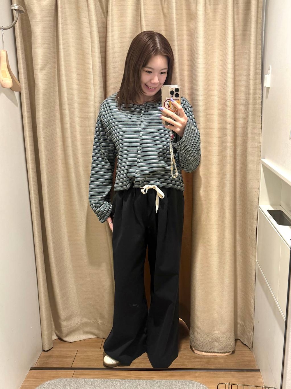 ラフに見えてバランス取りやすいコーデ◎ ゆるっとしたワイドパンツに コンパクトめなボーダー合わせで すっきり見えするのがポイントです ウエストも楽で履きやすいので デイリー使いにおすすめです🖤 シンプルだけど着回ししやすいので 1本あるとかなり使えます