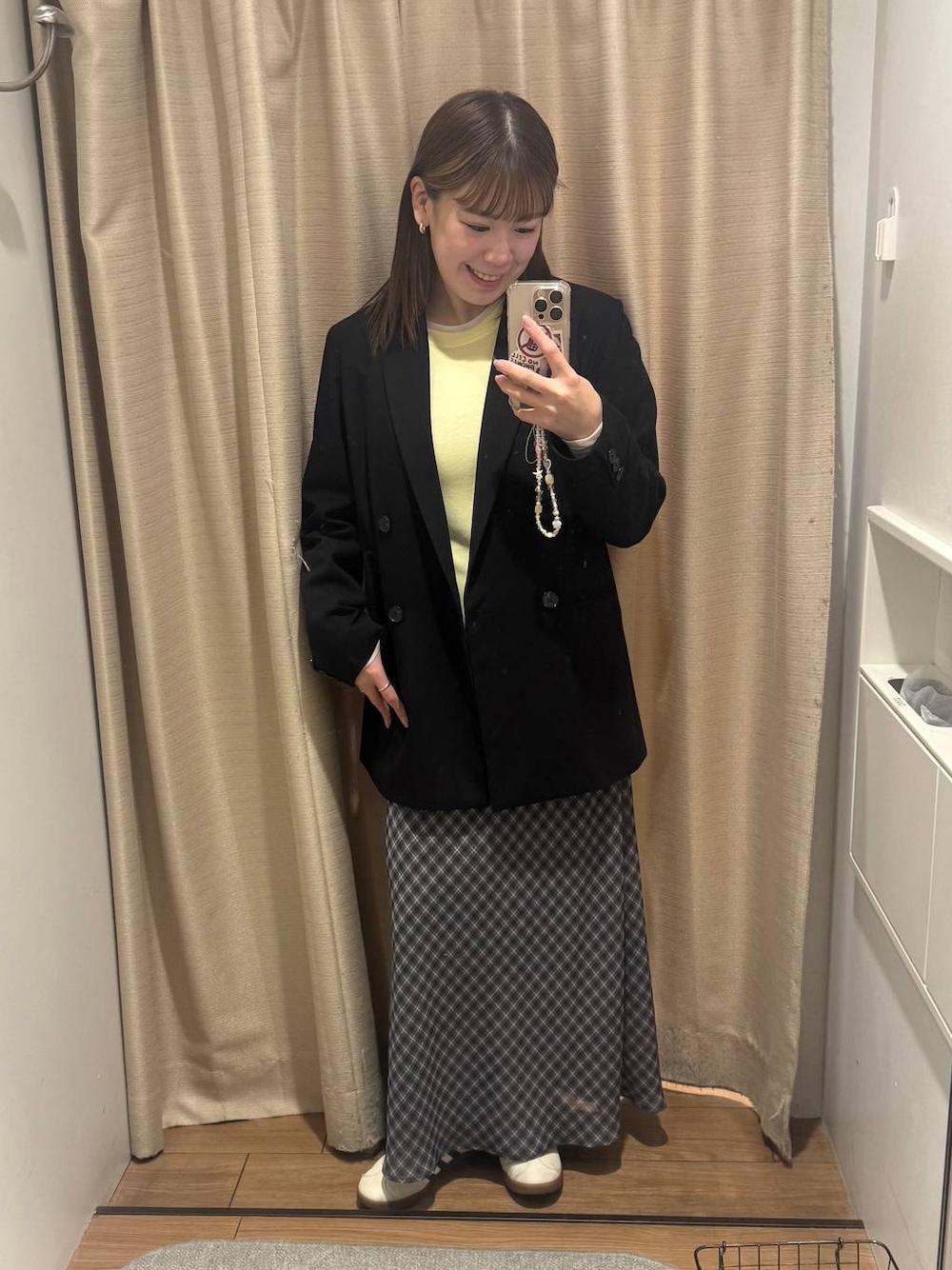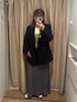 1枚でちゃんとおしゃれ見え🖤 ゆるっとしたジャケットに柄スカート合わせでこなれ感◎ インナーのカラーで春っぽさもプラスしてます🌼