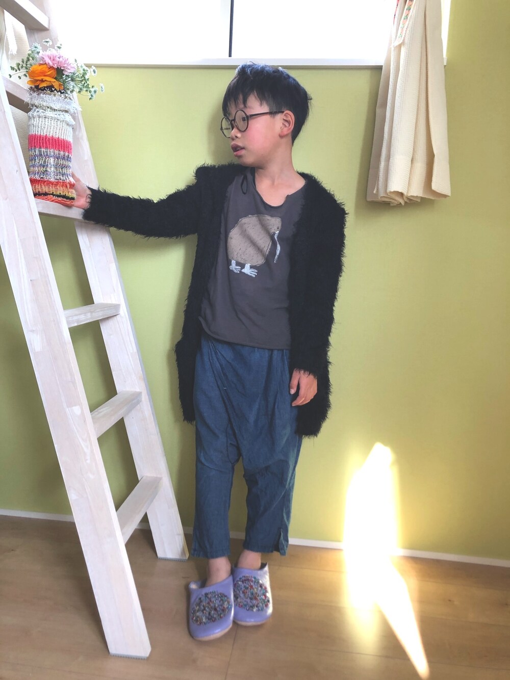 見ていただきありがとうございます😊 お花をかざったり、お家で楽しめることを子供と日々さがしています🎶 wearがあって気分転換が出来て助かります🏠 サルエルパンツとバブーシュで楽ちんコーデ🎶