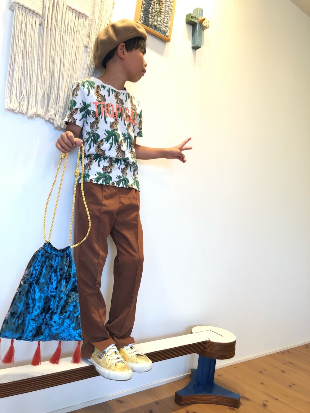 見ていただきありがとうございます😊 グローバルワークのパンツ、水色も買っておけば良かった😅 チチカカの巾着バッグはリバーシブルで可愛い❤️