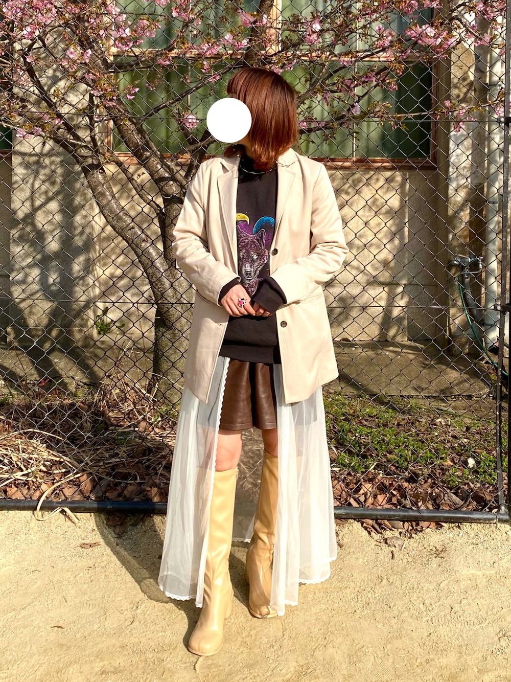 古着のアニマル柄スウェットとレースガウンで甘辛ミックスコーデです 🐺♡
