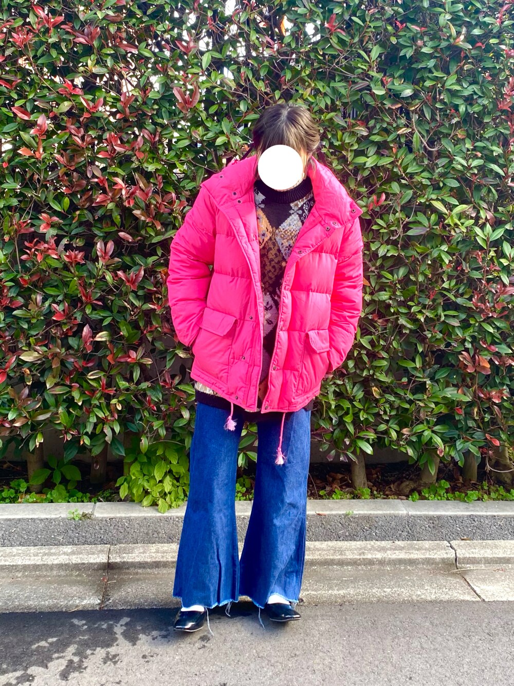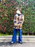 古着のニットとデッドストックのベルボトムのパンツ カジュアルになりすぎないようにエナメルパンプスを合わせました