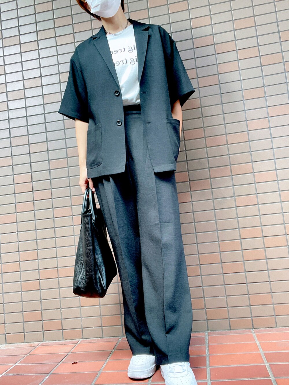 着用コーデ:205件ayuのテーラードジャケット「テックリネンショートスリーブロングパンツセットアップ」を使ったコーディネート
