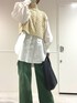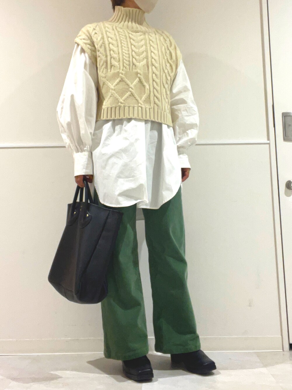 店舗限定カラーのパンツお気に入り💚 ニットベストあったかい🧶 2枚目のほうがブレが少ないかも🤔