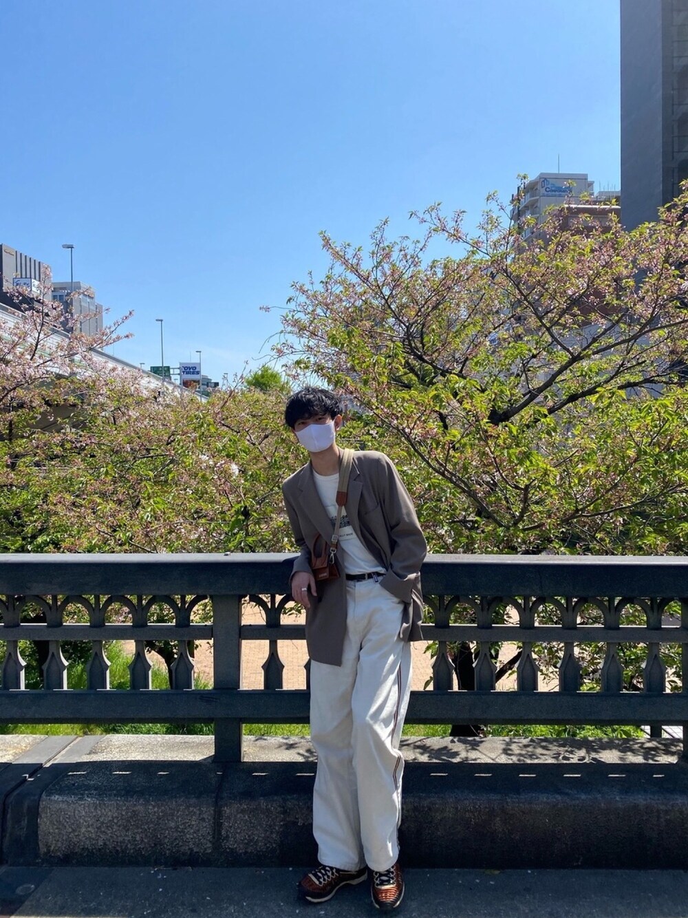 カチッとした感じも好きですが、スニーカーやデニムで気崩すのが1番好きかもです。 機能性のないミニバッグが映えますね🙄