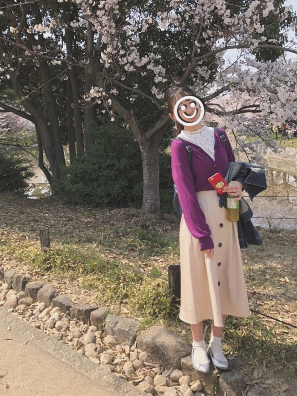 お花見なので露出が少ない方が良いかと、ロング丈のスカートにしました( ¨̮ )