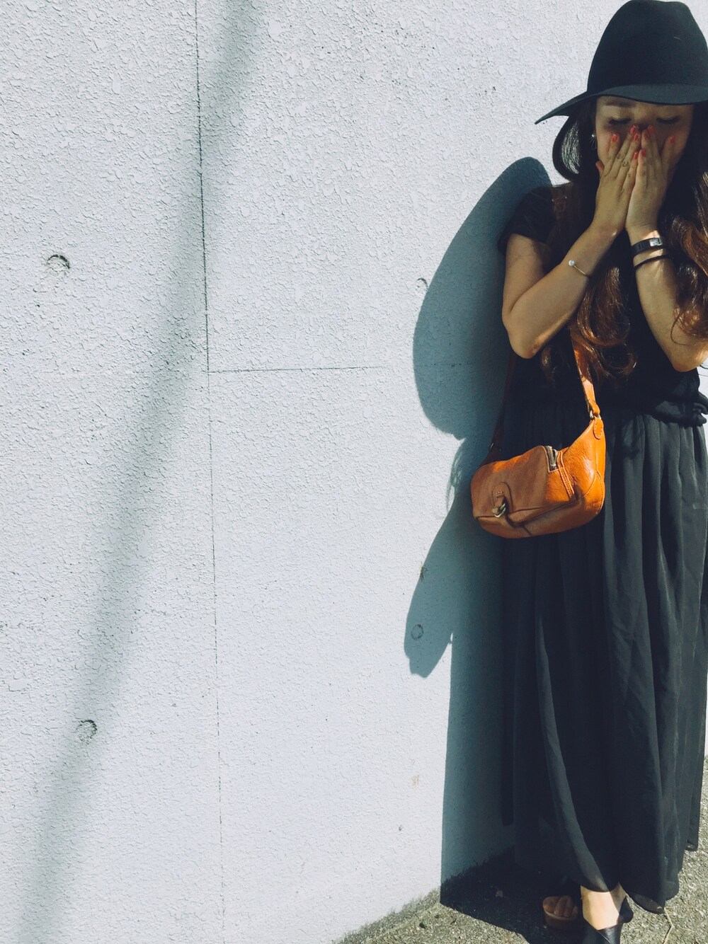 ものすごく暗い人になってしまった。 良く言えばモノトーンコーデってやつかな?🍁 全体が暗すぎたから、 キャメル色のバッグ👜と、 赤色のネイル💅🏻を差し色に。 ネイルはレディな赤色が今の気分でした😊