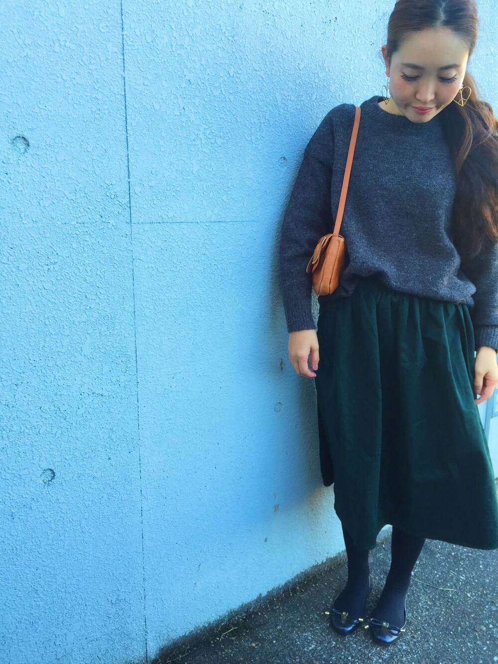 タイトスカートも好きだけど、 たまにはちょっとふんわりしたスカートで🙆🏻 固めの生地と形が良し!! ニットじゃ少し暑いくらい、いい天気になった🌞