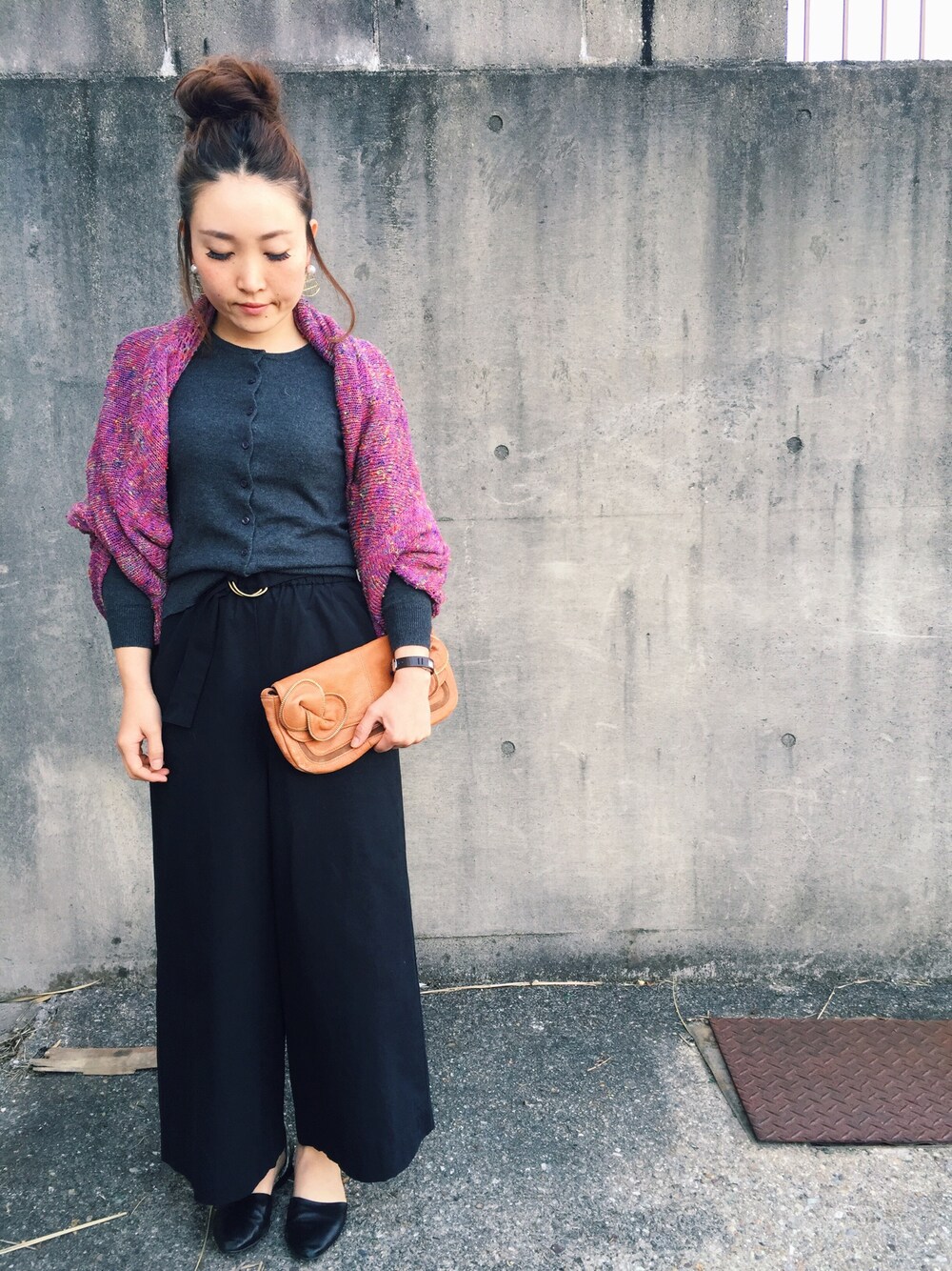 最近すっかり春めいてきたのに、 なんだか暗い色コーデが多いかもと思って、 明るめ紫のカーデを👵🏻🌸 これは着てるというより羽織ってる感じです。 カーデの上にカーデを羽織ってしまうという挑戦🙄💥