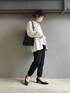 モノトーンコーデ🐼 きれいめカーディガンをジョガーパンツで 外す カジュアルママのきれいめコーデ🖤 バッグもこなれ感あるサイズ感とフォルムがカッコよくてお気に入りです🖤 Instagram▶︎n.o.r.i.0408