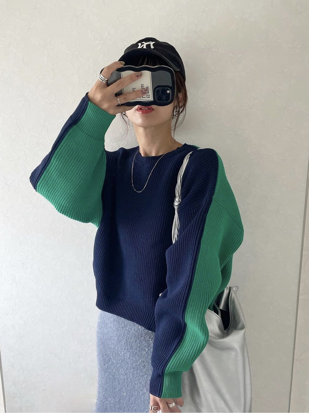 このニットの配色可愛すぎるぅ🥹 全体のシルエットもめちゃタイプやった💯