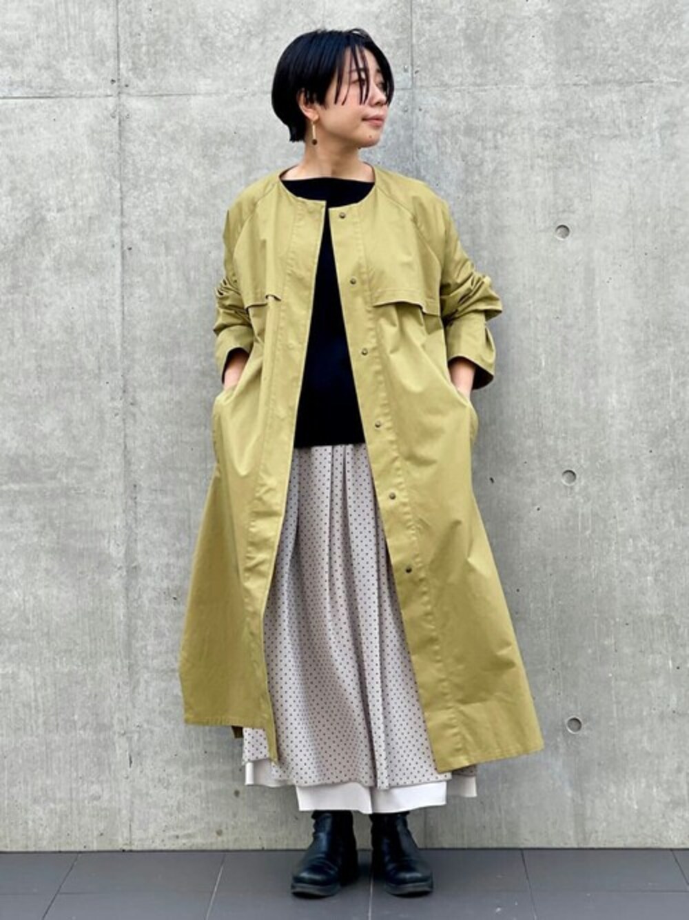 norikoのトレンチコート「袖のベルトから生まれる立体感が◎ノーカラートレンチコート」を使ったコーディネート