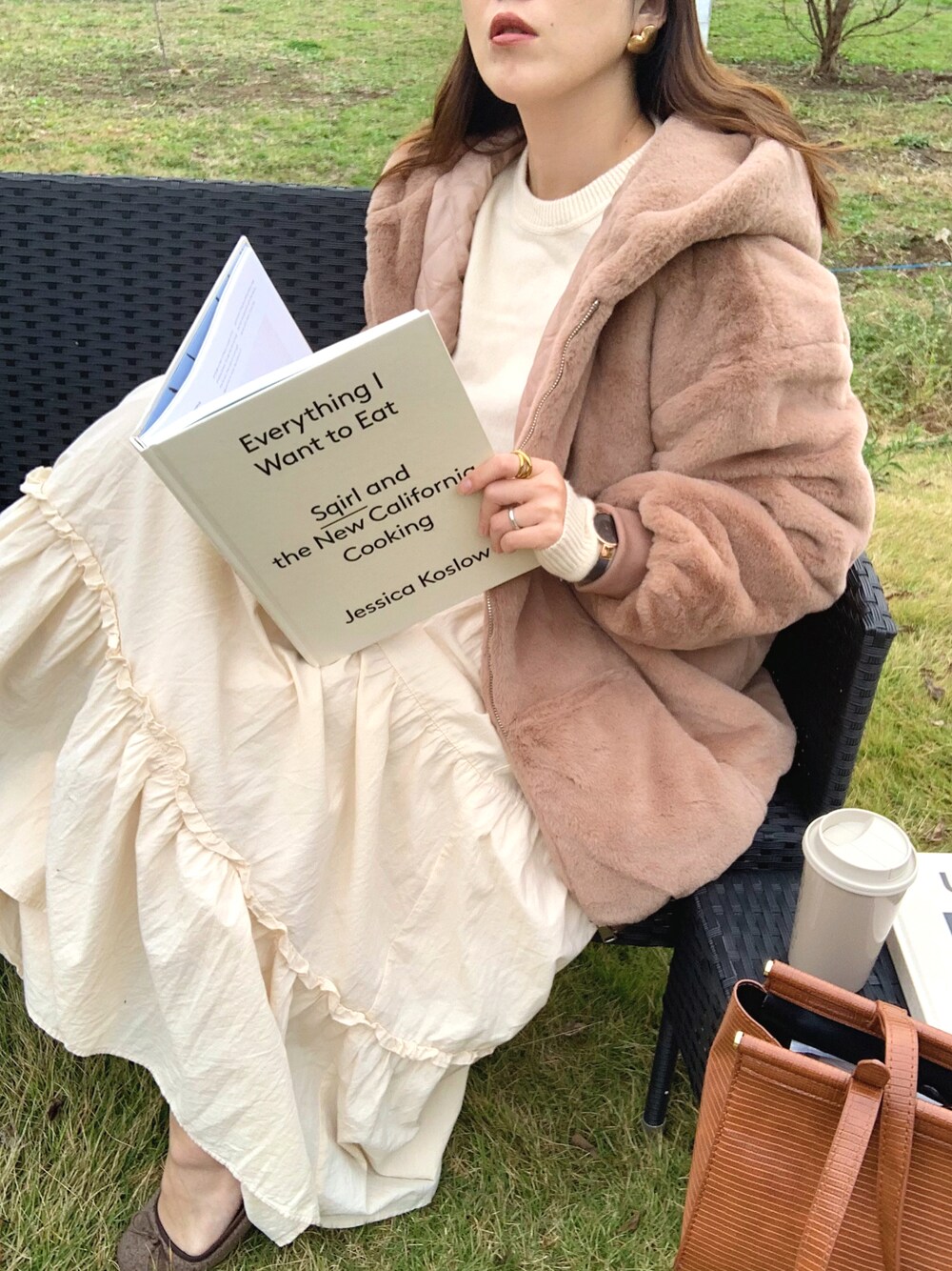 ブラウンのファージャケットが ボリュームたっぷりでかわいい しかも防寒も完璧っ くまさんみたいでかわいいょ〜