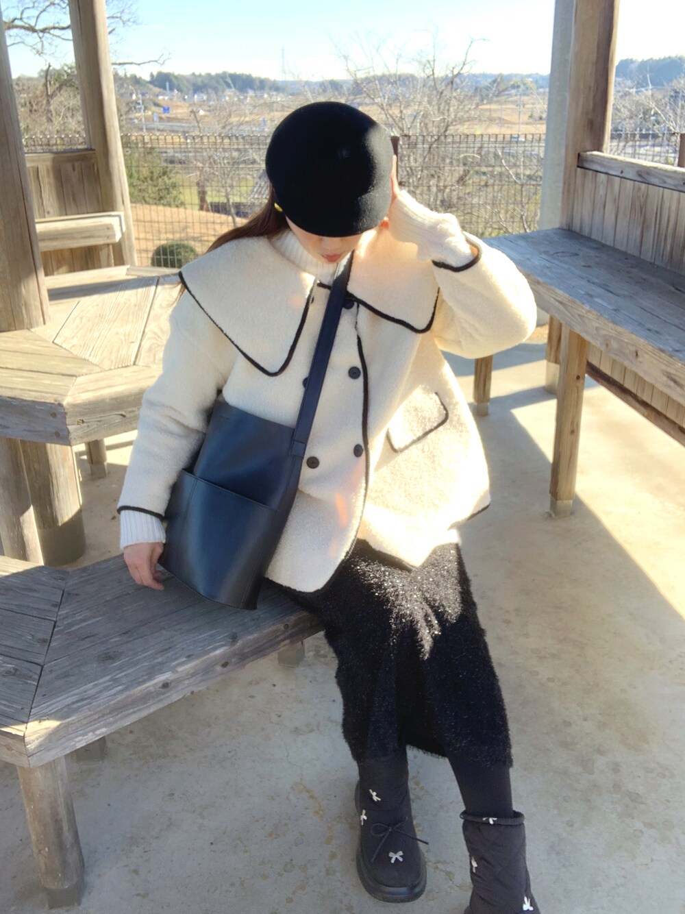 norisandesukaのトートバッグ「【ポーチ付き】縦型バケツシルエットのレザーショルダーバッグ」を使ったコーディネート