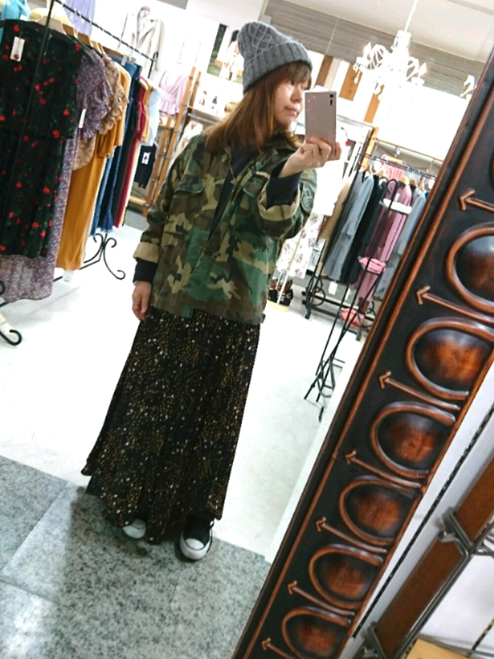 ☆*noririn*☆ のスカート「フラワープリントプリーツマキシスカート」を使ったコーディネート