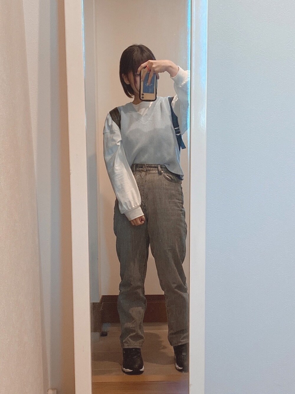 ‪📖💙 検定の試験のためのシンプルコーデ🙌🏻 あとこの水色のニットずっと欲しかったのでやっと買えてどう着こなそうか考えるのが楽しいです☁️☁️