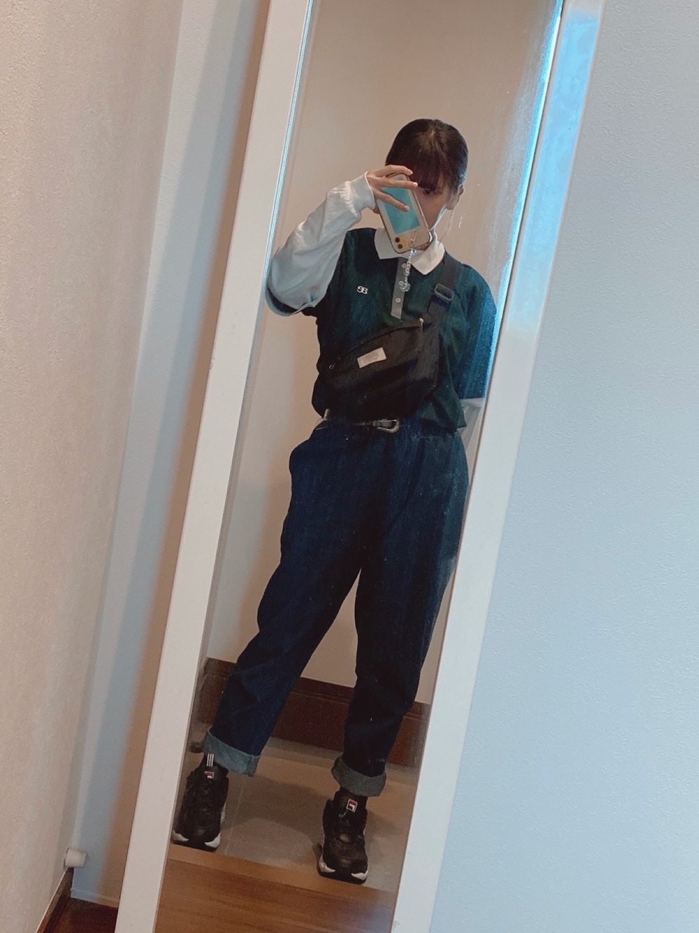 💚🏋🏻♀️ 体動かしに行くので多分着替えるだろうけど形から入ろうとスポーティに✌🏻 このポロシャツ一目惚れしたんですがそのまま着てもかわいいし、重ね着してもかわいいしデニムからスカートまで合わせられるので思い切って買ってよかったです☺️💚