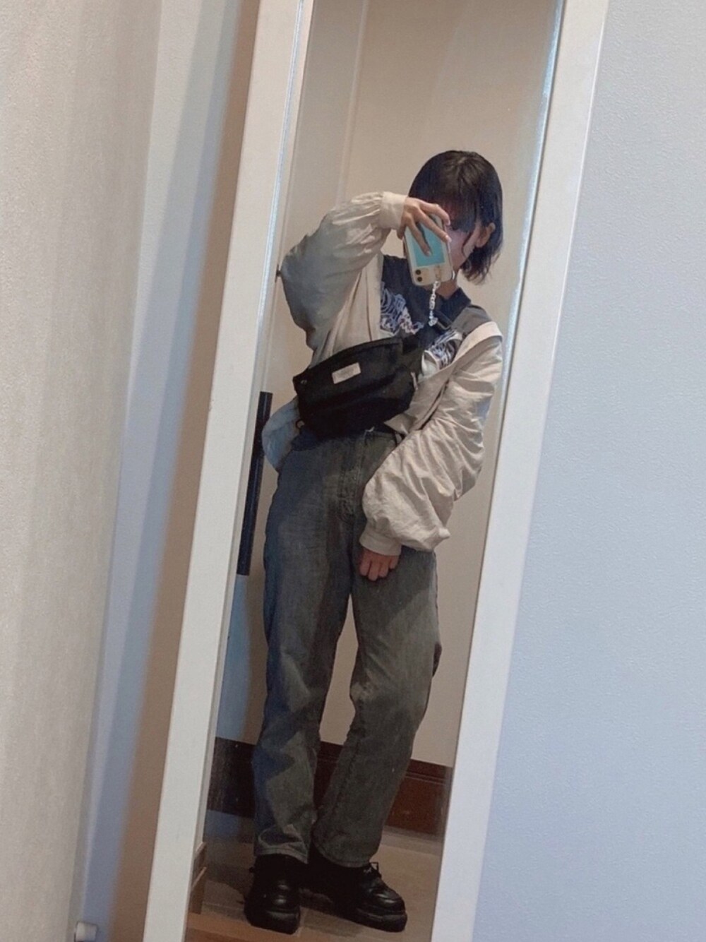 🖤👼 セレクトショップで買った柄Tシャツを着こなして見たくてシャツとデニムでカジュアルに合わせてみました✊🏻🔥 あとまだ人に見せられるクオリティじゃないですが少し巻き髪上手になってれば嬉しいです😌