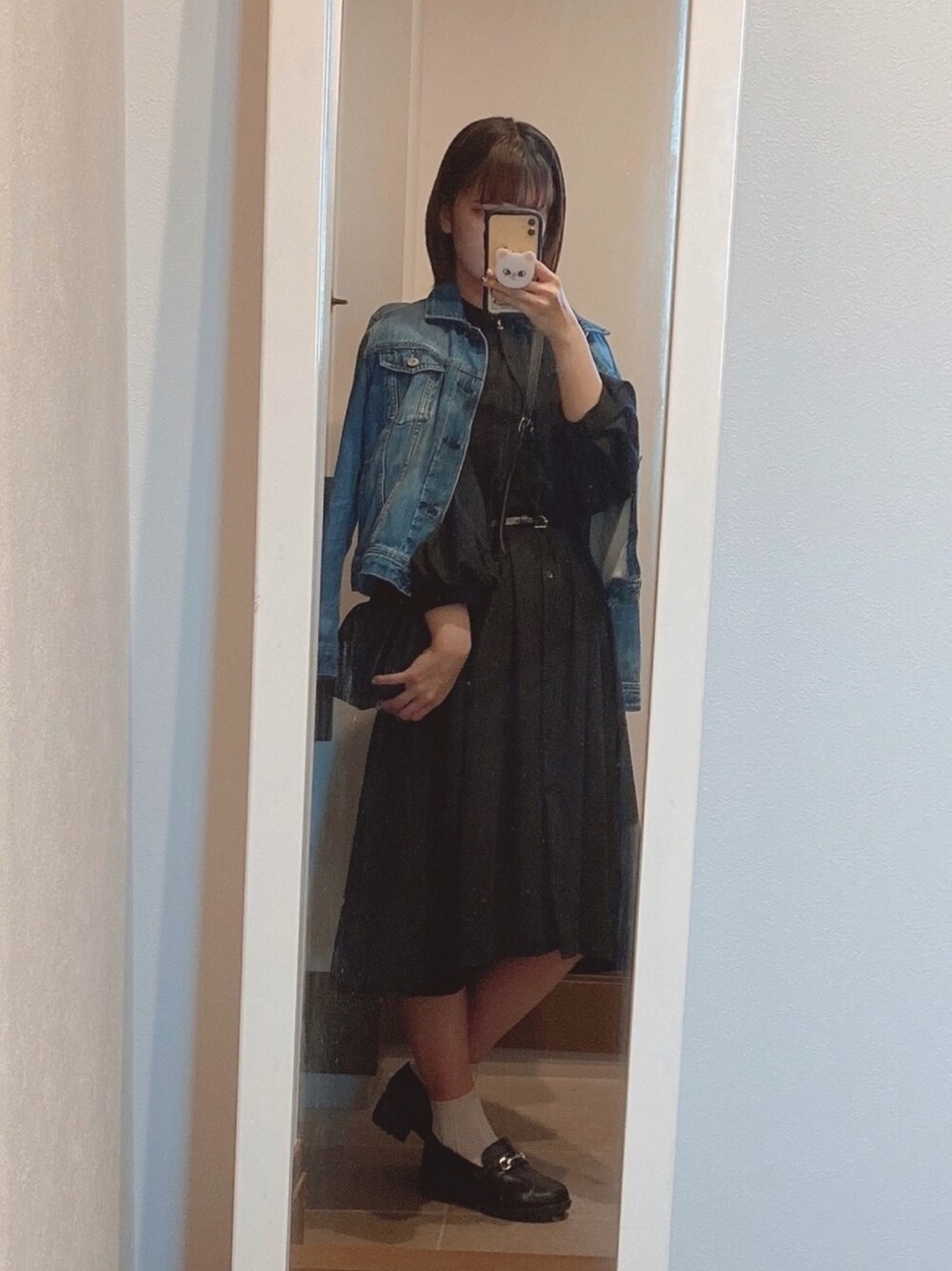 🐈⬛🌸 このシャツワンピース単体だけでも充分かわいいんですが春らしさが欲しかったのでデニムジャケット合わせてみました🙂 今日遊びに行く予定だったのにそれがなくなって拗ねて引きこもってました😭悲しい😭