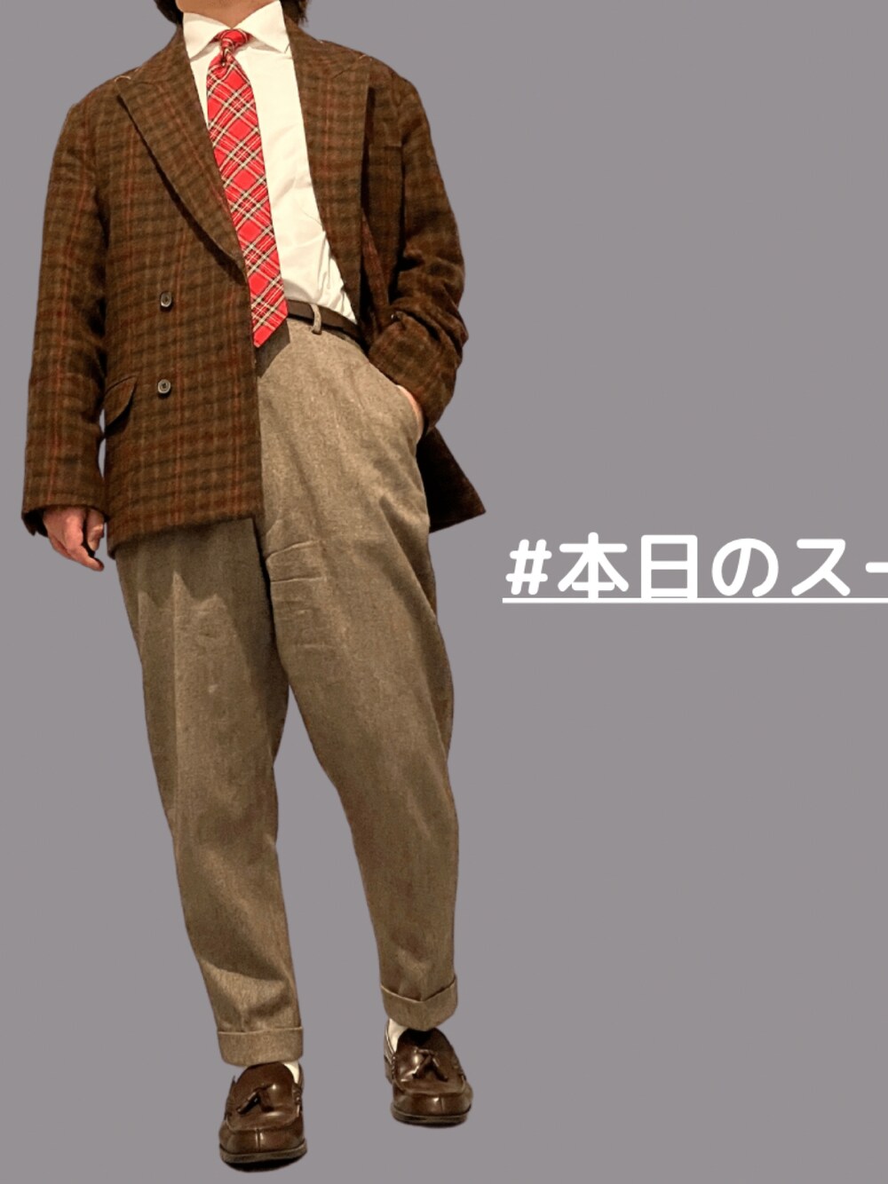 normcoreproductsのテーラードジャケット「ツイードチェック ダブル ジャケット」を使ったコーディネート