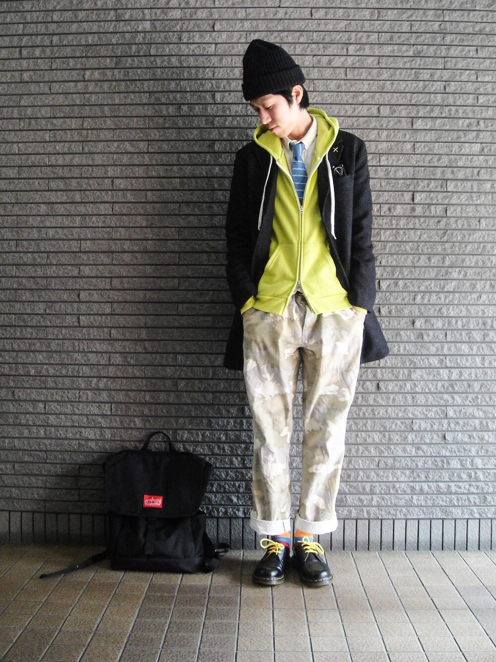 チェスターコートにネオンイエローのパーカーを合わせてみました。 じょじょに春に近付けていこっと(´ - `)