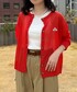 ご覧いただきありがとうございます(^^) ちょっとシアーなゲバコのカーディガン❤️ 赤が可愛いです❤️