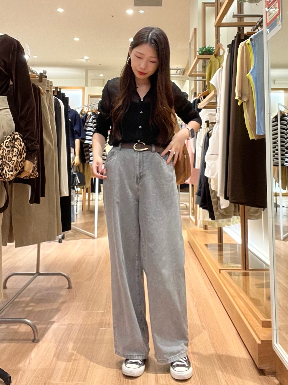 ご覧いただきありがとうございます(^^) お気に入りのシャツです🖤 フィット感はありますが、体のラインをひろいすぎないので華奢見えが叶います😍❤️ 羽織でも使えます!