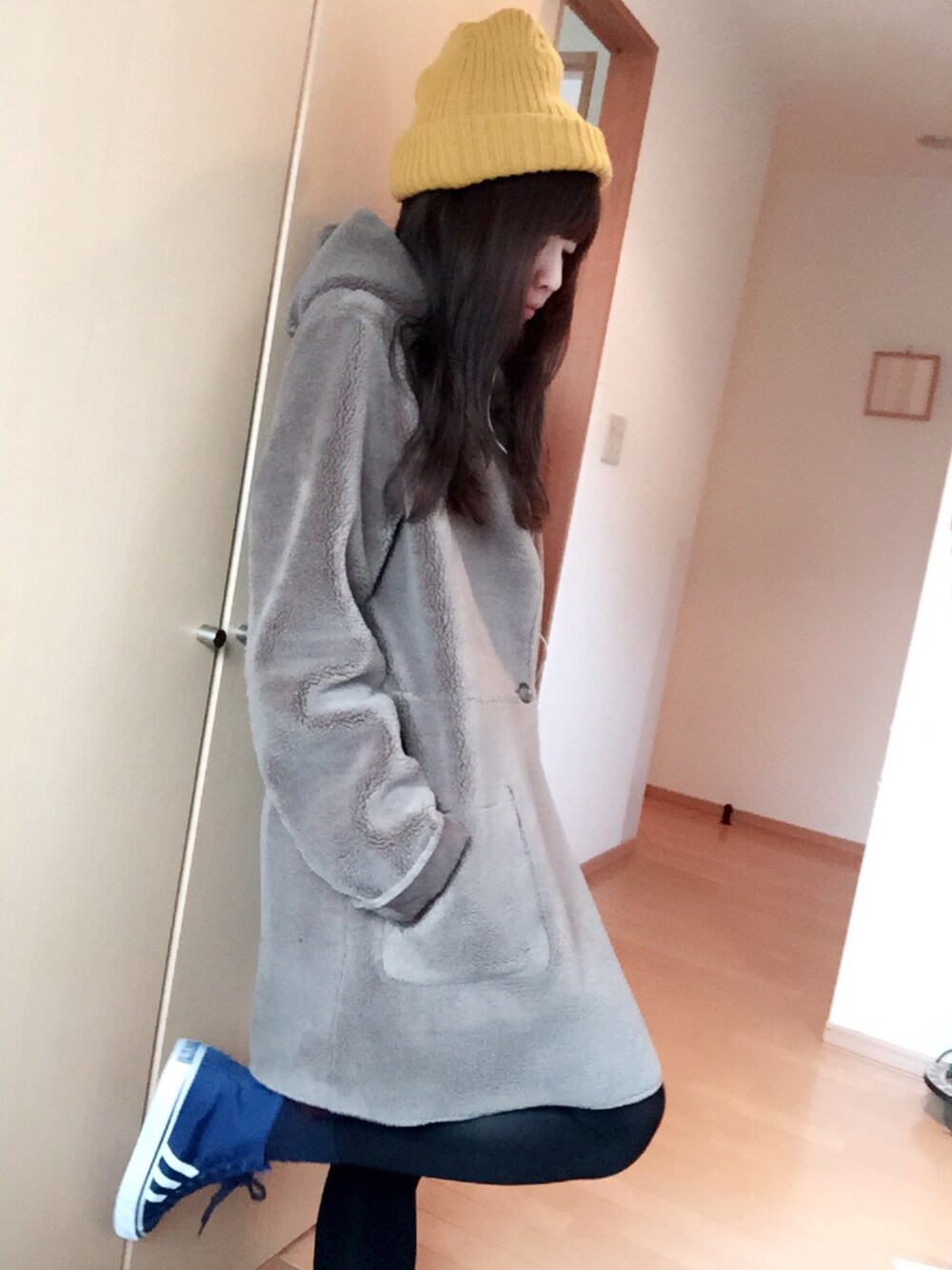 noのムートンコート「UR リバーシブルムートンフードCOAT」を使ったコーディネート