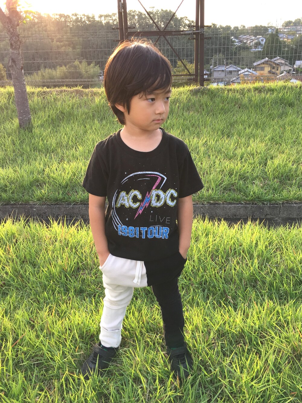 キャンプinフェスコーデ 岐阜県で開催されたgreen and gold2018に行ってきました。 ロックTにarkakamaの白黒パンツを合わせて動きやすいスタイルに。パンツは厚手生地なので朝晩冷えるキャンプにぴったりでした。黒パンツよりちょっとくせがでるのでお気に入りです👍 103センチと5歳にしては小柄な方ですが、6〜7歳用Lサイズを折り返してはいています。