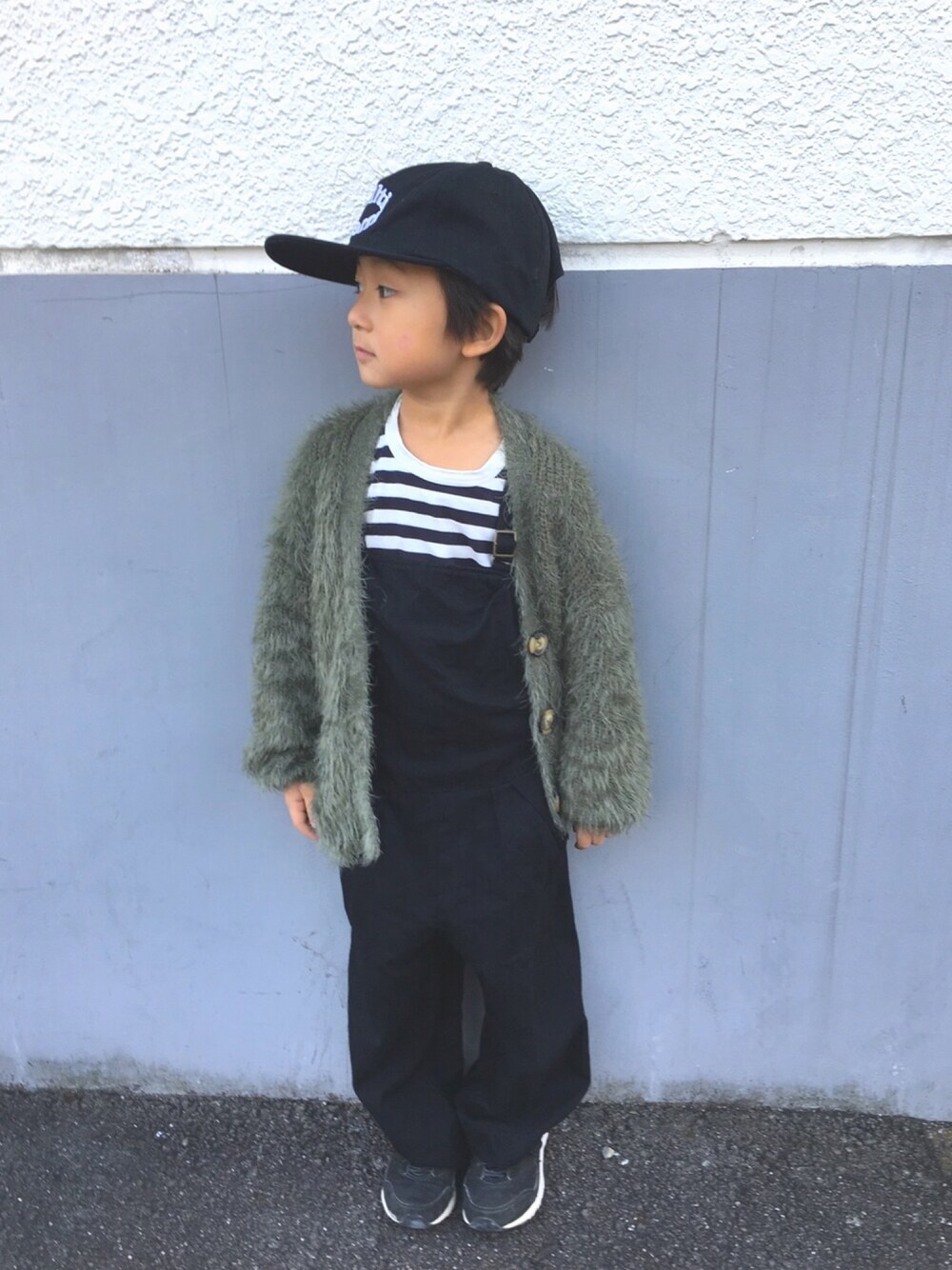 最近お気に入りのもこもこカーディガンはZARA KIDSのガールズのものです。あったかくて使いやすいし、くすんだグリーンがかわいい❤︎105センチで120サイズを着ています。 キャップは大人用を一番小さく調整して被っています。