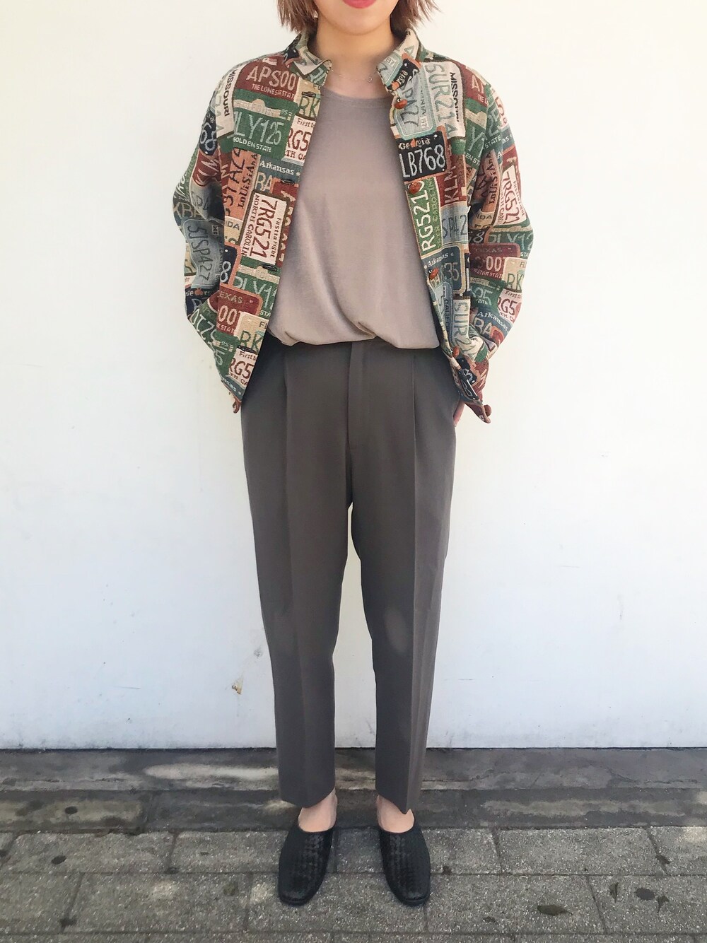 LADIES&ANTIQUES NoT kyomachiのその他アウター「総柄ジャケット ナンバープレート柄」を使ったコーディネート