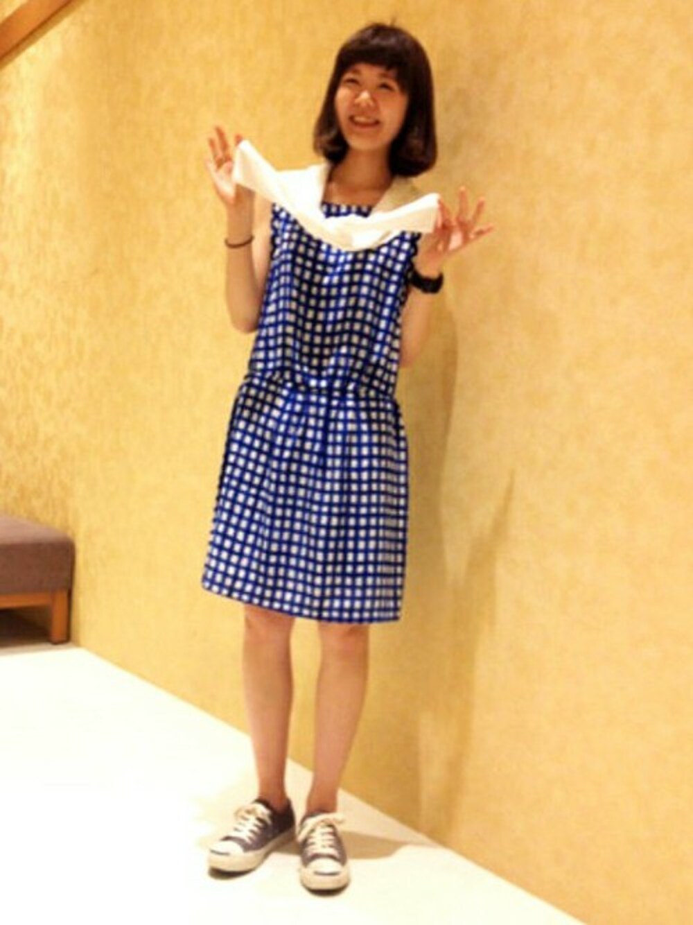 おかだ(LBC HEAD OFFICE)のワンピース「ブロックチェックワンピース」を使ったコーディネート